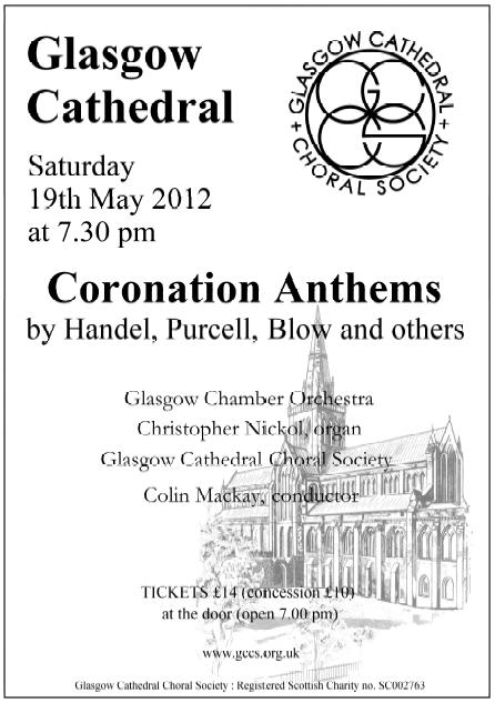 Glasgow Cathedral Choral Society Posted byAlan MathewMay 4, 2012Posted inEventsTags:Choral Society, Coronation Anthems, Glasgow Cathedral, Saturday 19th May Share this: Share on X (Opens in new window) X Share on Facebook (Opens in new window) Facebook Like Loading... Published by Alan Mathew Church Musician, Organist, Choir Leader View more posts