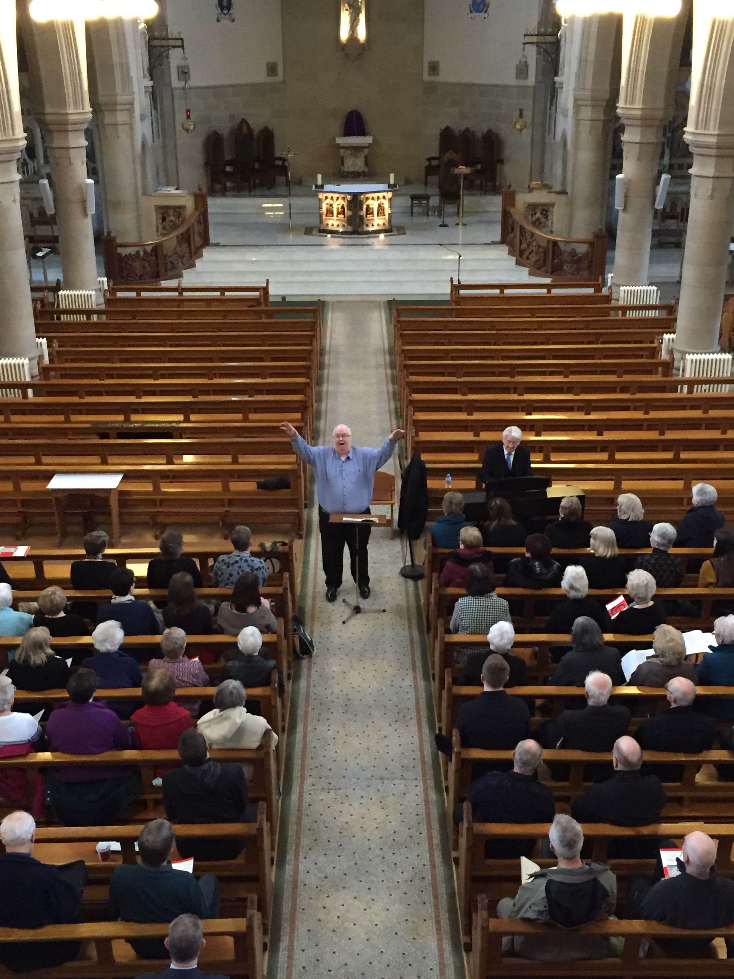 Des Mclean kept a watchful eye over the assembled singers and John Pitcathley presided over the cathedral organ.