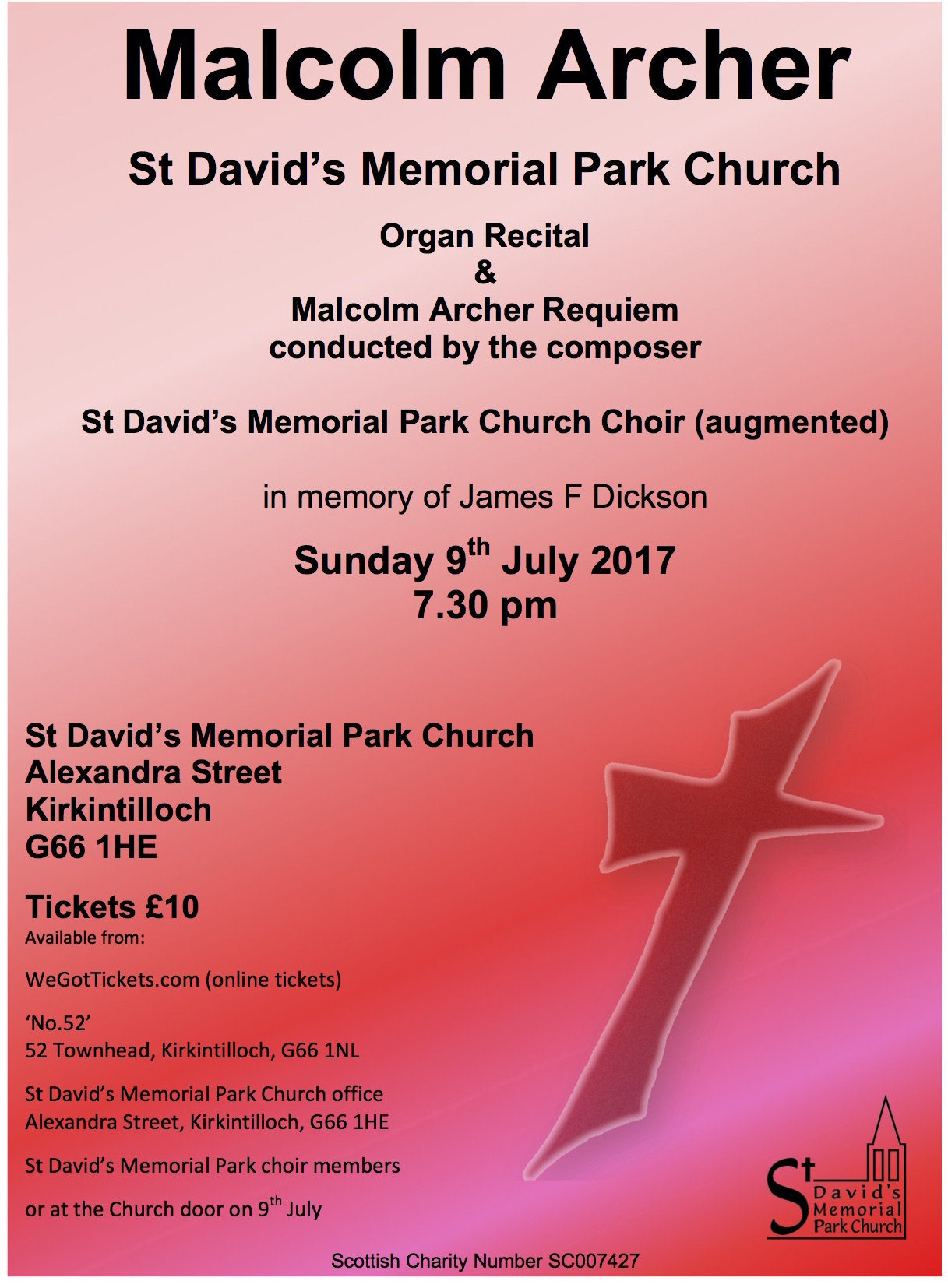 St David’s Memorial Park Church are extremely pleased to announce that UK renouned composer, organist and conductor Malcolm Archer is taking part in a concert on Sundat 9th July at 7.30pm. Full details on the poster. All invited. A warm welcome awaits.