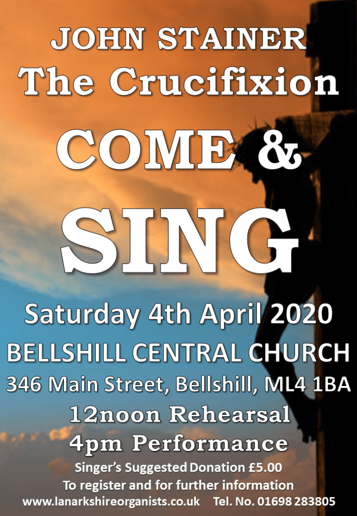 Details of our April 2020 come and sing are noted below and if you would like to register on line please use the online form below. Your details will be securely transferred to our secretary, Anne Maguire, and she will be in touch to confirm.