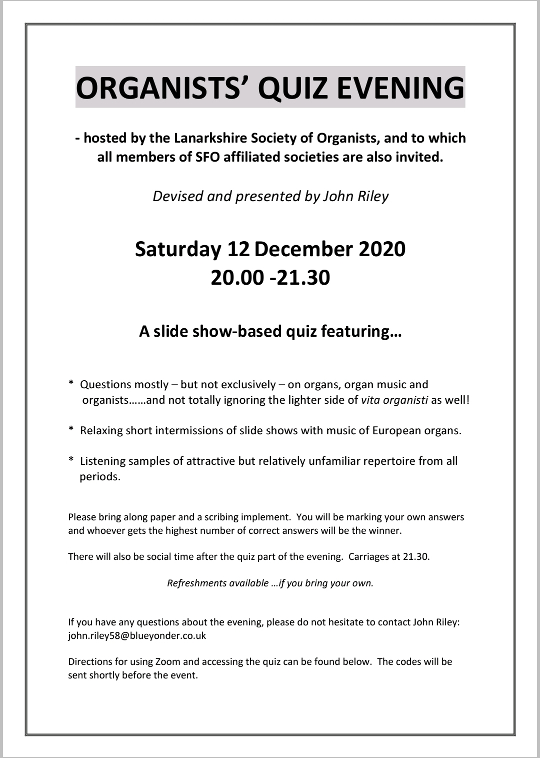 Zoom quiz night