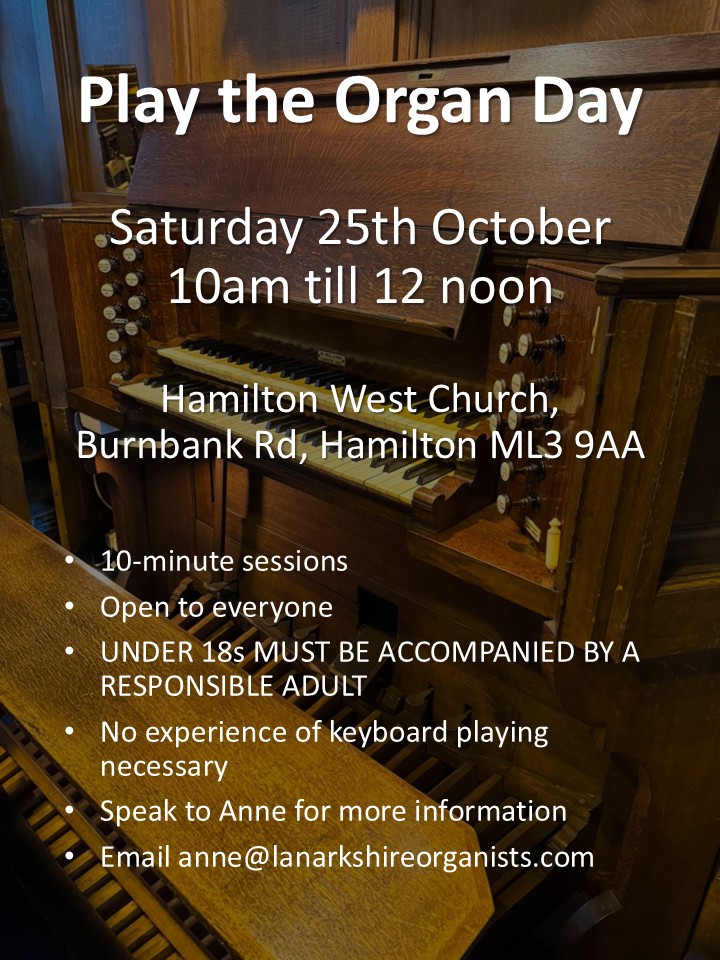 Join us this Saturday for our Play the Organ Day at Hamilton West Church from 10am to 12pm.